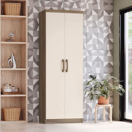 Armário multiuso Margarida é a opção ideal para organizar roupas ou objetos, ele pode ser utilizado no quarto, na área de serviço ou na despensa. Composto por 2 portas com amplo espaço interno, possuindo 6 prateleiras. A estrutura é produzida em MDP e MDF com revestimento em pintura UV, interno no padrão trama, que imita tecido, o que garante um móvel resistente e durável. As dobradiças são metálicas para proporcionar maior firmeza na hora de abrir e fechar as portas. Possui altura de 180 cm, largura de 61 cm e profundidade de 34 cm Os puxadores são de ABS cromado. Compacto e com um design discreto, o margarida mantém sua casa ainda mais organizada e completa. Acabamento da Gaveta: Acabamento da Porta: Pintura Texturizada UV Acabamento da Prateleira: Pintura Texturizada UV Acabamento dos Pés: Altura dos Pés: Ambiente Principal: Quarto Capacidade: Complexidade da Montagem: Média: pode ser montado por mais de uma pessoa e/ou necessite de maior conhecimento para montagem Cor: Rústico/Off White Cor do Produto: Rústico/Off White Cor Flex: Cor Interna: Trama Escala de Brilho: Semi-Fosco Escala de Brilho da Gaveta: Escala de Brilho da Porta: Semi-Brilho Escala de Brilho da Prateleira: Semi-Brilho Gaveta com Chave: Informações Complementares: Itens Inclusos: 1 Armário, Kit Ferragens e Manual de Montagem Linha ou Coleção: Margarida Manual de Especificação Técnica: Manual de Montagem e Instalação: http://cdn2.madeiramadeira.com.br/tecnico/m-veis-henn/103830-d110-roupeiro-multiuso-margarida-novo.pdf Material da Gaveta: Material da Porta: MDP Material da Prateleira: MDP Material do Puxador da Gaveta: Material do Puxador da Porta: ABS Material dos Pés: Material Principal: MDP Montagem Flex: Necessita Montagem: Sim Origem do Produto: Nacional Pés Reguláveis: Peso: 30 Peso Máximo por Gaveta: Peso Máximo por Prateleira: 8 Possui Espelho: Não Possui Pés: Não Possui Portas: 02 Profundidade do Tanque: Recomendações de Uso, Manutenção e Limpeza: Para limpeza de seu móvel, use uma flanela seca ou umedecida. Não utilize produtos químicos que possam danificar o produto. Se possível, não encoste o móvel diretamente na parede: deixar este espaço é importante para permitir a circulação de ar, a fim de manter o produto sempre arejado e sem ocorrência de mofo. Rodízio com Trava: Sapatas Niveladoras: Sim Sistema de Montagem: Parafuso e Cavilhas. Suporta Até (kg): 56 Tábua é Dobrável: Tipo de Armário Multiuso: Armário Multiuso Tipo de Corrediça da Gaveta: Tipo de Dobradiça/Corrediça da Porta: Metálica Tipo de Madeira Maciça: Tipo de Madeira Maciça da Gaveta: Tipo de Madeira Maciça da Porta: Tipo de Madeira Maciça da Prateleira: Tipo de Madeira Maciça do Puxador da Gaveta: Tipo de Madeira Maciça do Puxador da Porta: Tipo de Madeira Maciça dos Pés: Tipo de Porta: Bater Tipo de Puxador da Gaveta: Tipo de Puxador da Porta: Externo