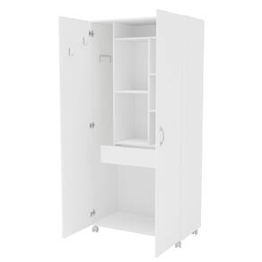 Características: Estrutura MDP Pintura UV 02 Portas com dobradiças metálicas 01 Gaveta com corrediças metálicas Nicho para tábua de passar Puxadores em Plástico Peso suportado por Prateleira: 2kg Peso suportado na Gaveta: 2kg