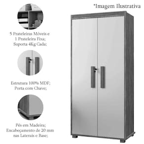 • Pintura: Puxador em MDF; Porta com Chave; 5 Prateleiras Móveis; 1 Prateleira Fixa; Pés em Madeira; Encabeçamento de 20 mm nas Laterais e Base.