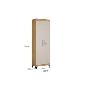Estrutura: MDP Portas: 02 portas de bater, com dobradiças metálicas e chave Puxadores: Em EPS Prateleiras: 05 prateleiras móveis com espaço entre elas de: largura 60 cm; altura 27 cm; profundidade 35 cm Pés: 04 pés fixo em PVC Nicho: 06 nichos Largura: 63,5 cm Altura: 190,0 cm Profundidade: 40,0 cm Peso: 43,60 Kg