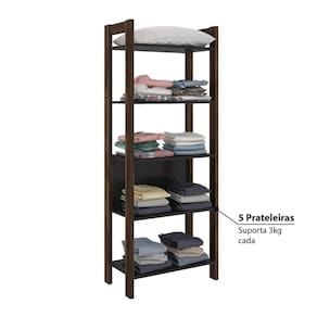 Armário Multiuso Estilo Estante Preto e Nogal Tecno Mobili