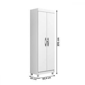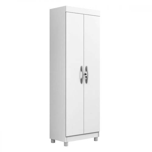 O(a) Armário Multiuso Cairo 2 Portas 5 Prateleiras com Chave Branco - Loja é produzido em MDP na escala de brilho Fosco, e possui um grau de dificuldade de montagem: Médio.