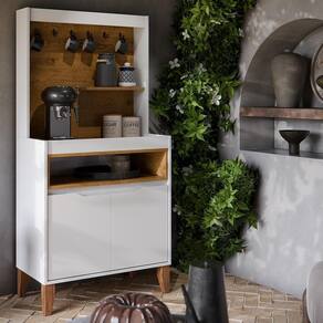 O design moderno desse balcão cantinho do café vai adicionar um toque de elegância e estilo à sua cozinha, sala de estar, escritório ou até mesmo ao espaço gourmet. Com suas linhas retas e acabamento impecável, esse armário multiuso é capaz de combinar com qualquer estilo de decoração, tornando-se a peça essencial para quem busca praticidade. Além disso, com o excelente espaço interno, uma prateleira, nicho decorativo e, ainda, ganchos especialmente projetados para suspender suas xícaras favoritas, você terá fácil acesso a tudo que precisa para ter um momento de relaxar, enquanto aprecia a pausa para o cafezinho. Chega de perder tempo procurando pelos seus utensílios preferidos! Com o cantinho do café, tudo estará organizado e ao seu alcance!