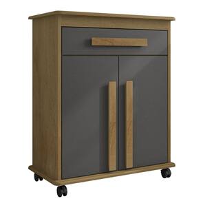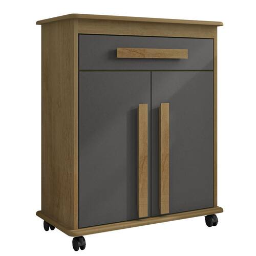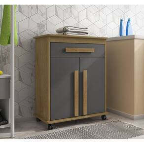 Cor: Cinamomo e grafite Linha: Banheiro/lavanderia Modelo: Chile Tipo: Multiuso Material: MDP e MDF Acabamento: Pintura UV Quantidade de pés: 4 (rodízios) Quantidade portas: 2 Quantidade de gavetas: 1 Quantidade de prateleiras: 1 Tipo de dobradiças: Metálicas Tipo de corrediças: Telescópicas Necessita montagem: Sim Complexidade da montagem: Fácil Sistema de montagem: Buchas e parafusos Quantidade de volumes: 1