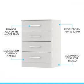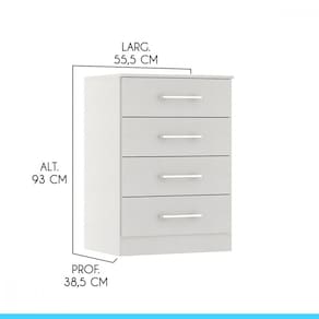 Você merece o melhor quando se trata de móveis para sua casa e a escolha certa para atender todas as suas necessidades. Com um design atual, une versatilidade, conforto e beleza. Com quatro gavetas, você terá muito espaço para manter tudo organizado e ao alcance das mãos. Produzida com materiais de excelente qualidade, garantindo a sua resistência ao desgaste diário e mantendo sua beleza e funcionalidade por muito tempo. O melhor em móveis no design atual aliando conforto, qualidade e ótimos preços!