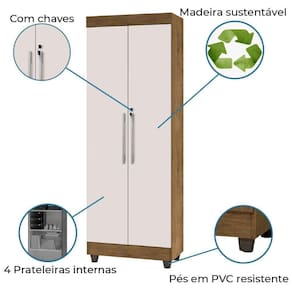 Armário Multiuso Lavanderia Com Chave 2 Portas 1,80m Texas Jequitibá / Off White J&a Jequajequitibá/off Whiteitibá/off White