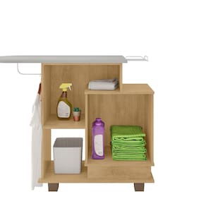 Esta linda peça vai incrementar sua área de serviço com sua beleza , praticidade e segurança na hora de passar roupas. Contem puxadores de MDF, dobradiças metálicas, cabideiro e porta ferro em alumínio e tecido antitético. Acabamento da Porta: Pintura UV Acabamento da Prateleira: Pintura Acabamento dos Pés: Pintura Acompanha Manual de Instalação: Sim Altura dos Pés: 5 cm Altura Máxima dos Pés: 5.0000 Ambiente Principal: Área de Serviço codigo_ean: 7900288254573 Complexidade da Montagem: Média: pode ser montado por mais de uma pessoa e/ou necessite de maior conhecimento para montagem Cor: Cinamomo/ Branco Cor da Estrutura: Marrom Cor do Produto: Cinamomo/ Branco Cor Flex: Não Cor Interna: Cinamomo Escala de Brilho: Fosco Escala de Brilho da Porta: Fosco Escala de Brilho da Prateleira: Fosco Espessura da Chapa: 15 mm Fita Integrada: Não Formato do Espelho: Não Itens Inclusos: 1 Armário, Kit Ferragens e Manual de Montagem Linha ou Coleção: Havaí Manual de Montagem e Instalação: https://product-hub-prd.madeiramadeira.com.br/108375242/documents/8732042f-3345-460f-9029-7d5844fc245f3250481365917592537290786.pdf Marca: RV Móveis Material da Porta: MDF Material da Prateleira: MDF Material do Fundo: MDP Material do Puxador: MDF Material do Puxador da Porta: MDF Material dos Pés: Plástico Material Principal: MDF/MDP modular: Não Montagem Flex: Não Necessita Montagem: Sim Origem do Produto: Nacional Pés Reguláveis: Não Pés Removíveis: Não Peso: 27 kg Peso Máximo por Prateleira: 3 kg Pintura: Sem Pintura Porta com Fechadura: Não Possui Cabideiros: 01 Possui Chave: Não Possui Espelho: Não Possui Nichos: 02 Possui Pés: 04 Possui Portas: Sim Possui Suporte para Vassoura: Não Possui Tábua: Sim Possui Tulha/Cesto: Não Possui Vidro: Não Prateleiras Removíveis: Não Quantidade de Prateleiras: 01 Prateleira Quantidade do Produto: 1 Recomendações de Uso, Manutenção e Limpeza: Pano úmido Resistente à Chuva: Não Sapatas Niveladoras: Não Sistema de Montagem: Parafusos, Minifix e cavilhas Suporta Até (kg): 30 kg Tábua é Dobrável: Não Tamanho do Produto: 92 x 118,5 x 36 Tipo de Armário Multiuso: Tábua de Passar Tipo de Dobradiça/Corrediça da Porta: Metálica Tipo de Porta: Bater Tipo de Puxador da Porta: Externo