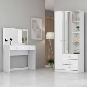 MDP e MDFArmário Multiuso Doha e Penteadeira Daila Ambiente com Led Branco - Henn