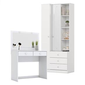 MDP e MDFArmário Multiuso Doha e Penteadeira Daila com Led Branco - Henn