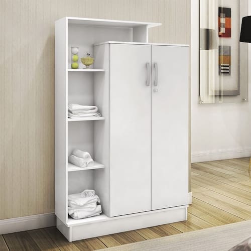 Características: Material da Estrutura em MDP Acabamento em Pintura UV 02 Portas articuladas Nichos com prateleiras Dobradiças Metálicas Puxadores em Plástico ABS