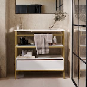 Armário Multiuso Gabinete Banheiro Industrial 1 Gaveta Thor Branco Cedro com Dourado - Rede Móveis