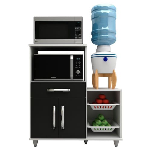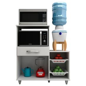 Além disso, possui 1 Gaveta e 2 Portas que protegem os compartimentos interno, perfeitos para guardar louças, mantimentos ou até mesmo os seus eletrodomésticos. Para completar a lista de adjetivos desse armário multiuso, ele ainda conta com um nicho para micro-ondas ou forno elétrico. Ah, a qualidade também é inquestionável, pois é fabricado em MDP/MDF com revestimento BP e fita de borda, o que confere maior resistência e durabilidade ao produto. Conta ainda com dobradiças metálicas, puxadores cromados, cestos da fruteira e pés em PVC e também gaveta com corrediças metálicas.