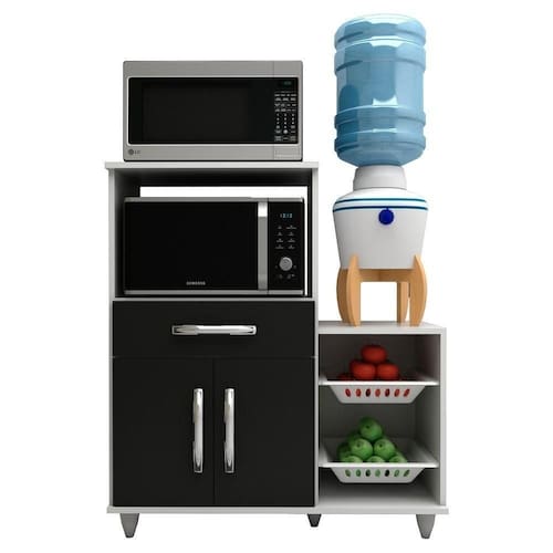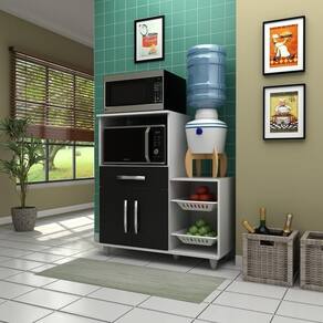 Além disso, possui 1 Gaveta e 2 Portas que protegem os compartimentos interno, perfeitos para guardar louças, mantimentos ou até mesmo os seus eletrodomésticos. Para completar a lista de adjetivos desse armário multi, ele ainda conta com um nicho para micro-ondas ou forno elétrico. Ah, a qualidade também é inquestionável, pois é fabricado em MDP/MDF com revestimento BP e fita de borda, o que confere maior resistência e durabilidade ao produto. Conta ainda com dobradiças metálicas, puxadores cromados, cestos da fruteira e pés em PVC e também gaveta com corrediças metálicas.