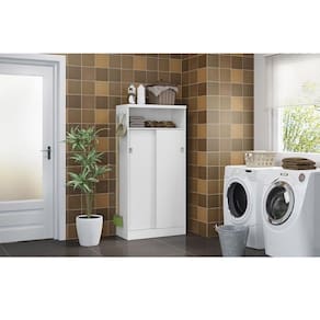 Armário Multiuso Lavanderia 528 c/ 2 Portas de Correr Branco - Carraro