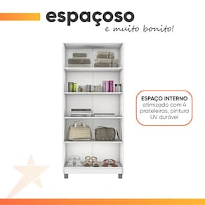 TIPO DE PINTURA: Pintura UV MATERIAL: MDP POSSUI PORTAS: Sim, 2 portas POSSUI Prateleiras: Sim, 5 Prateleiras PRATELEIRAS SUPORTAM ATÉ: 15 Kg DOBRADIÇAS: Metálicas PUXADORES: Plástico POSSUI PÉS: Sim, 4 Pés MATERIAL DOS PÉS: Plástico ARMÁRIO SUPORTA ATÉ: 60 Kg PESO: 33,2Kg MANUAL DE MONTAGEM: Enviar no E-mail GARANTIA: 3 meses INSTRUÇÕES E CUIDADOS: Limpar com pano seco, manter em lugar livre de umidade, ao abrigo de exposição direta ao sol.