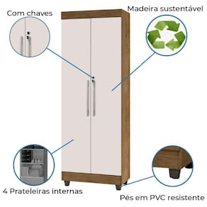O Armário Multiuso Lavanderia Texas é ideal para diversas utilidades da sua casa como, lavanderia, quarto ou ambientes de trabalho. Possui 4 prateleiras internas bem distribuídas e espaçosas, quatro pés que ajudam na limpeza do local sem danificar seu móvel, pintura UV com acabamento em verniz brilho, oferecendo maior durabilidade e resistência ao móvel. Para deixar o produto ainda mais completo, contém chave nas portas garantindo que você organize, e mantenha a segurança de seus pertences.