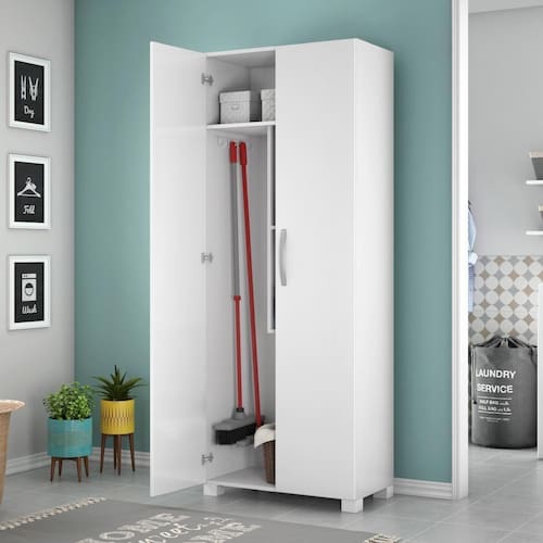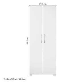 Armário Multiuso Lavanderia Notável Nt4015 Branco DESCRIÇÃO: O Multiuso Lavanderia NT4015 é o móvel perfeito para que a sua área de serviço esteja sempre organizada. Produzido em MDP e com acabamento em Pintura UV, o móvel possui ganchos na parte interna para guardar vassouras, além de prateleiras para organizar ou | MODELO: Armário Multiuso NT4015 | MARCA: Notável | COR: Branco | MEDIDAS: A: 186,4cm; L: 67cm; P: 39cm | MATERIAL: MDP - 15 e 12mm | PINTURA: UV (Ultravioleta) | ACABAMENTO: Brilho | PORTA: Sim, possui 2 portas articuladas | PUXADORES: Em PVC | DOBRADIÇAS: Metal Curva | GAVETAS: Não possui | PRATELEIRA: Sim, possui 2 prateleiras | PÉS: Sim, possui 4 pés quadrados de plástico | PESO: 35,04kg | PESO MÁXIMO SUPORTADO: 20kg | SISTEMA DE MONTAGEM: Parafusos e cavilhas | DIFICULDADE DE MONTAGEM: Fácil | INSTRUÇÕES E CUIDADOS: Para maior durabilidade, recomenda-se que a limpeza dos móveis seja feita da seguinte forma: Nas partes externas (portas, laterais e frente de gaveta) e internas, a limpeza deverá ser feita com pano limpo e levemente umedecido em água e sabão neutro. Em | aviso: Montagem não inclusa. Entregamos até a porta de entrada da casa do cliente ou até a portaria do condomínio. Cor: Branco