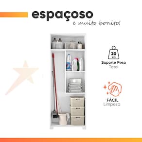 O Multiuso Lavanderia NT4015 é o móvel perfeito para que a sua área de serviço esteja sempre organizada. Produzido em MDP e com acabamento em Pintura UV, o móvel possui ganchos na parte interna para guardar vassouras, além de prateleiras para organizar outros objetos, como baldes e produtos de limpeza. O design do Multiuso Lavanderia NT4015, da Notável Móveis, vai valorizar ainda mais a sua área de serviço, oferecendo praticidade e organização!