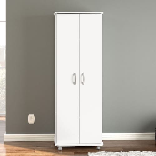 Características: Estrutura MDP Pintura UV 02 Portas com dobradiças metálicas 08 Prateleiras com amplo espaço Puxadores em Plástico Peso suportado por Prateleira: 7kg