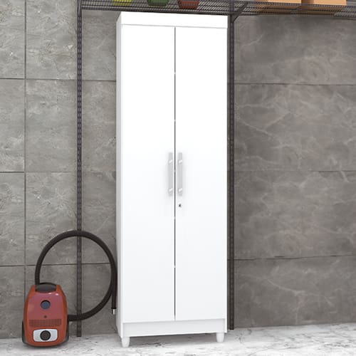 O(a) Armário Multiuso Malta 2 Portas 5 Prateleiras Branco - Loja é produzido em MDP na escala de brilho Impressão UV, e possui um grau de dificuldade de montagem: Médio.