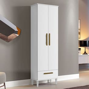 O(a) Armário Multiuso Natal 2 Portas 1 Gaveta Branco - Kaiki Móveis é produzido em MDP na escala de brilho Fosco, e possui um grau de dificuldade de montagem: Médio.