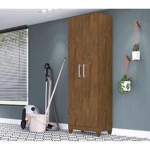 Características Estrutura em MDP de 12mm. Pintura em acabamento UV. 02 Portas articuladas com dobradiças metálicas. Puxadores na cor bronze. Prateleiras internas com amplo espaço. Cantoneira de metal para fixação na parede. Pés em PVC.
