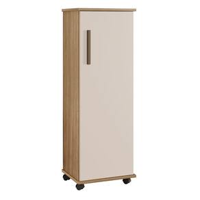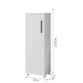 O Armário Multiuso com Rodízio Olinda se adapta a todos os espaços, organizando e decorando ambientes como quartos, copa, espaço gourmet e áreas de serviço. Uma porta, ótima divisão interna com quatro prateleiras, acabamento interno branco e rodízios.\nEspecificações Altura: 127 cm Largura: 45 cm Profundidade: 36 cm Peso: 22Kg\nGarantia: 3 Meses Material da estrutura: MDF/MDP Número de Portas: 01 Número de Prateleiras: 04 Possui vidro: Não Tipo de pés: Rodízio  Necessita de montagem? Sim, sugerimos a contratação de algum profissional experiente de sua preferência. Recomendações de limpeza e manutenção: Limpar com pano umedecido, não aplicar produtos químicos.\nObservações: Não oferecemos serviço de montagem, mas todos os produtos possuem manual de montagem com o passo a passo. Recomendamos contratar um profissional de montagem. Pode existir alguma diferença de tonalidade entre a foto e o produto, devido ao tratamento de imagens e à calibração de cores do monitor.