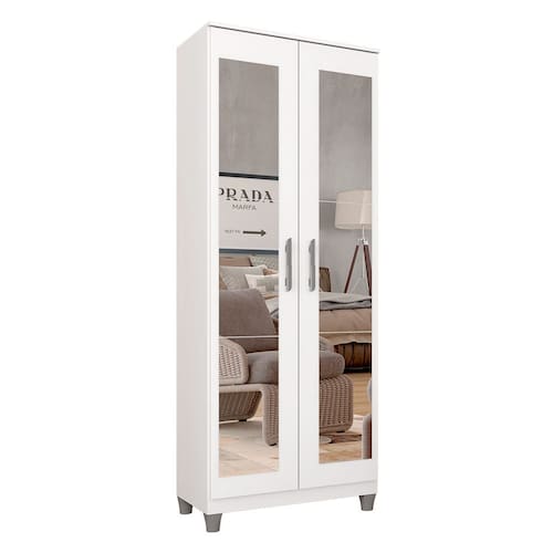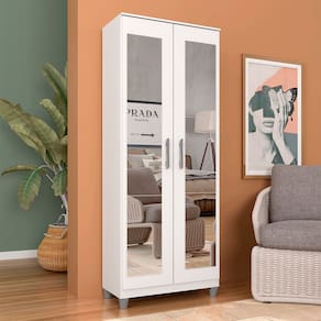 Detalhes Técnicos - Medidas: A: 183,5cm x L: 60,5cm x P: 35cm - MDP 12mm - Acabamento em UV Alto Brilho - Tonalidade: Branco - 6 Espelhos de 50cm x 20cm x 3mm - Puxadores e Pés em Polietilenos - Prateleiras suportam até 5kg distribuídos