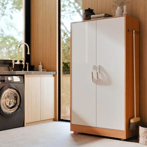 O Armário Multiuso Porta-Vassouras é ideal para organizar lavanderias, áreas de serviço, cozinhas, despensas e outros ambientes internos. Seu design funcional oferece espaço para diversos itens do dia a dia, mantendo tudo organizado.