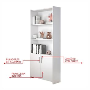 Armário Multiuso Para Escritório Com 2 Portas 56118 Notável Branco New Apresentamos o Armario Multiuso para Escritorio com 2 Portas da Notavel uma otima opcao para quem precisa de um lugar para manter seus livros e documentos organizados! Com 3 prateleiras (sendo uma interna) e puxadores em aluminio, e o movel ideal para guardar os documentos do escritorio, ou manter os livros e revistas da casa organizados, alem de expor aqueles objetos importantes com destaque. Ele possui ainda, portas com chaves, para que voce possa guardar aqueles pertences mais importantes com seguranca.