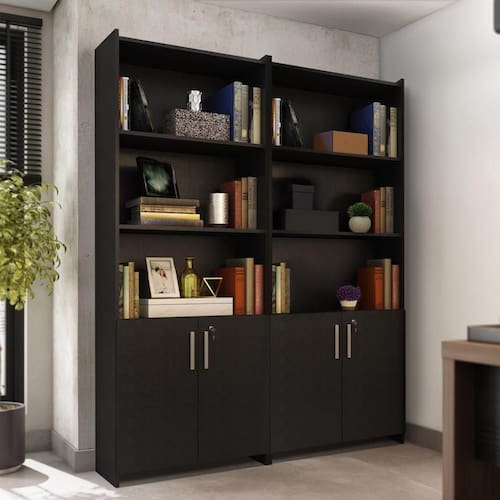 Ideal para quem precisa de ainda mais espaço e praticidade na organização! Este kit com 2 unidades do Armário Multiuso Escritório da Notável Móveis é perfeito para manter livros, documentos e objetos sempre bem guardados. Cada armário conta com 3 prateleiras (sendo uma interna), puxadores em alumínio e fechadura com chave para maior segurança. Com design funcional, garante mais organização e estilo ao seu ambiente de trabalho ou estudo.