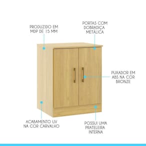 Armário Multiuso Pequeno 0723 60x76cm Menu Móveis Carvalho O Armario Multiuso e um movel util e versatil, perfeito para complementar o seu ambiente. Possui duas portas e uma prateleiras interna para manter tudo organizado.