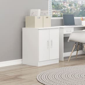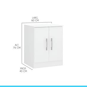 CARACTERÍSTICAS TÉCNICAS: - Produzido em MDP de 15 mm - Acabamento UV na cor Branco - Porta com Dobradiça Metálica - Puxador tipo Alça em ABS na cor Prata - Possui 1 Prateleira Interna