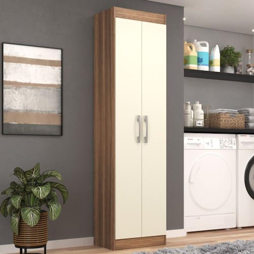 - É desmontável: Sim - Inclui Manual: Sim - Necessita Montagem?: Sim - Possui Espelho?: Não - Possui vidro?: Não - Com corrediças?: Não - Acessórios de Montagem: Parafusos e Cavilhas - LInha: Direto Sim - Capacidade máxima de carga (kg): 35kg - Comodo indicado: Lavanderia - Material do Puxador: Plástico - Observação: Objetos decorativos que aparecem nas imagens, não acompanham o produto. - Recomendação de Limpeza: Usar pano levemente umedecido seguido de pano seco. - Como os Móveis Chegarão na Minha Casa: Desmontados, em caixas, com manual de montagem e todos os acessórios para a montagem. - Dificuldade de Montagem?: Baixo - Sistema de Montagem: Parafusos e Cavilhas - Revestimento?: FF - Possui Prateleiras?: Não Possui - Possui Cabideiros?: Não Possui - Possui Pés?: Não Possui - Escala de Brilho: Fosco - Peso Suportado nas Prateleiras (Kg): 7 - Material das Dobradiças: Metal - Material das Corrediças: Não Possui - Tipo de Porta: Porta de Bater - Material da Estrutura: MDP - Quantidade de Prateleiras: 4 - Quantidade de Portas: 2 - Garantia: 3 meses