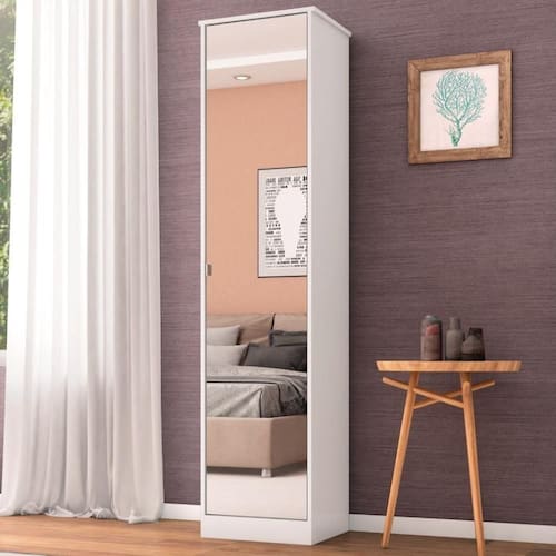Material: MDP | Cor: Branco | Armário Multiuso Altura x Largura x Profundidade: 184 x 44 x 40 | Material da Cômoda: MDP | Quantidade de Portas: 1 | Quantidade de Gavetas: 0 | Cômodo Indicado: Quarto | Possui Prateleira: Sim | Possui Gaveta: Não | Possui Espelho: Sim | Nome do Simples no Fornecedor: Miami | do Fabricante: 3 Meses | Instruções/Cuidados: Evite com líquidos. Nada de lavar os móveis. Móveis não gostam de umidade. Não deixe o móvel exposto ao sol. Os acessórios também precisam de limpeza. | Material para Filtro: MDP | Quantidade de Volumes: 2 | Peso Bruto: 35 | Conteúdo Embalagem: Armário Multiuso | Origem: | Estado de Origem: Paraná | Peso Bruto (volume 01): 25 | Comprimento x Largura x Altura (volume 01): 1,83 x 0,41 x 0,06 | Peso Bruto (volume 02): 10 | Comprimento x Largura x Altura (volume 02): 1,81 x 0,43 x 0,06 Cor: Branco