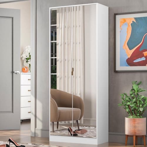 Armário multiuso Sapateira 2 Portas Com espelho e 1 Gaveta Austin - Branco