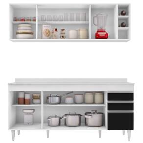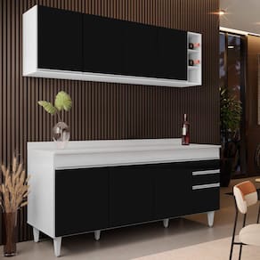 Em um cômodo que exige funcionalidade e beleza o Conjunto Armário Aéreo Nevada e Balcão 180cm com Tampo Dallas Branco/Preto da Lumil é a escolha perfeita para a sua Cozinha! Vem conhecer os detalhes!