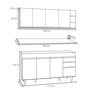 Conteúdo da Embalagem: 1 Balcão, 1 Tampo, 1 Armário Aéreo, 1 Nicho.