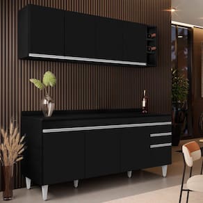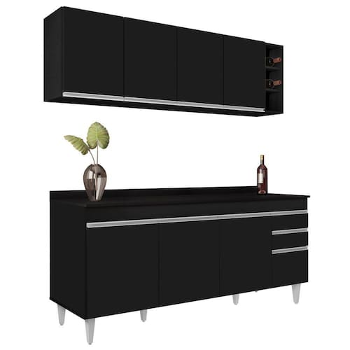 Em um cômodo que exige funcionalidade e beleza o Conjunto Armário Aéreo Nevada e Balcão 180cm com Tampo Dallas Preto da Lumil é a escolha perfeita para a sua Cozinha! Vem conhecer os detalhes!