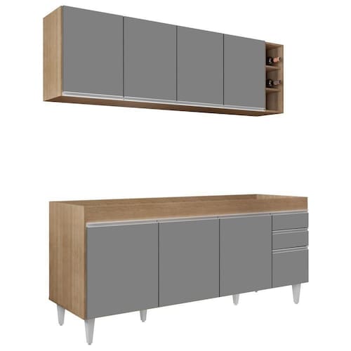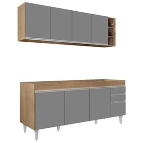 Em um cômodo que exige funcionalidade e beleza o Conjunto Armário Aéreo Nevada e Balcão para Pia 180cm Dallas Castanho/Cinza da Lumil é a escolha perfeita para a sua Cozinha! Vem conhecer os detalhes!