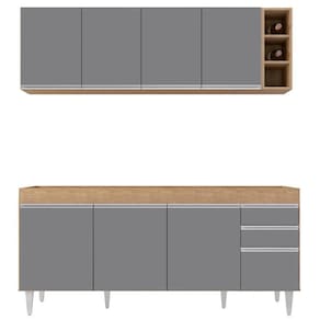 Para completar a sua tão sonhada Cozinha Moderna, esse conjunto incrível ainda conta com o Armário Aéreo Nevada que possui a mesma estrutura em MDP, 4 portas convencionais, 1 prateleira interna e puxadores em alumínio iguais aos do Balcão agregando elegância e charme ao seu ambiente, e 1 Nicho Riad com 3 repartições, ideal para guardar garrafas e objetos de decoração.