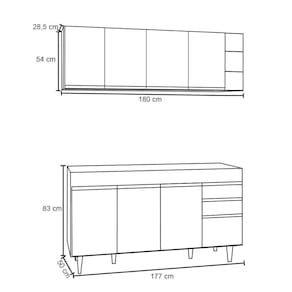 Conteúdo da Embalagem: 1 Balcão, 1 Armário Aéreo, 1 Nicho.