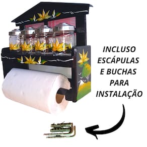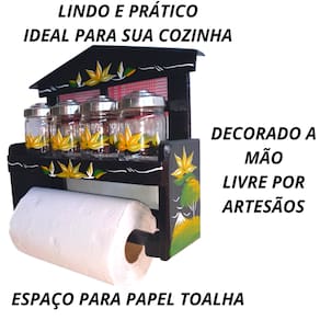 Porta tempero artesanal casinha feito totalmente em modo artesanal com espaço para papel toalha O porta tempero contém 4 vidros de 220 ml cada, todos os vidros possui tampa feita em alumínio com trava para manter o aroma e qualidade de seus temperos. Produzido em madeira de (lei) ecologicamente correto.