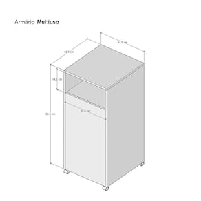 Informações Técnicas: Medidas Totais (com rodinhas): 86cm de altura x 42cm de largura x 42cm de profundidade Medidas internas do Nicho: 25cm de altura x 39cm de largura x 42cm de profundidade Produto não contém fundo na parte de trás do armário Acompanha 4 rodinhas