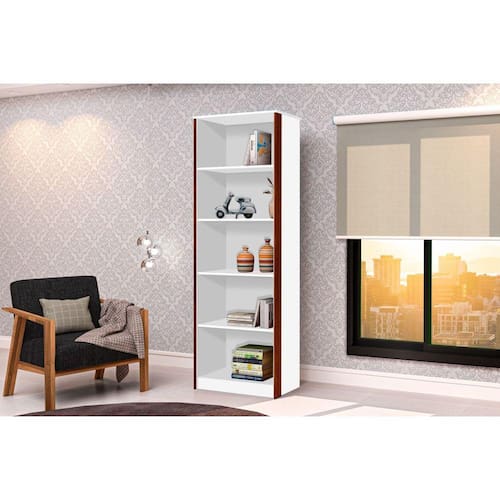 Armário Organizador Livreiro 4 Prateleiras Office Escritório Branco com Freijó - Rede Móveis