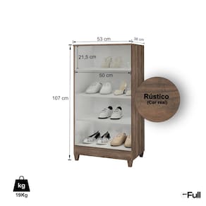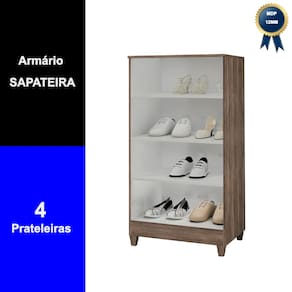 As cores branco, café, cinamomo e rústico dão um toque de charme e elegância ao produto, combinando bem com diversos estilos de decoração. As 2 portas contam com puxadores elegantes que facilitam o acesso aos seus sapatos. Já as 4 prateleiras, oferecem espaço suficiente para acomodar uma variedade de tamanhos de sapatos, mantendo-os organizados e visíveis.