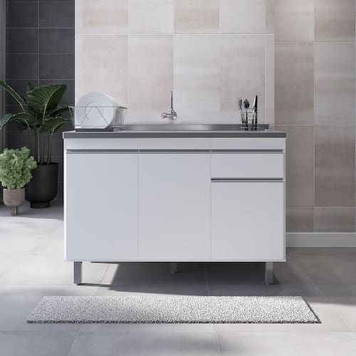 Armário P/ Pia Inox 120cm Branco 3 Portas 1 Gaveta S/ Tampo