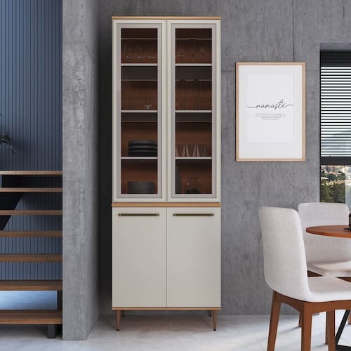 Armário Paneleiro 0,8m 4 Portas Vidro Fume Isabelle Freijo/Arenas - Bege
