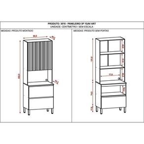 O PANELEIRO 3P 1GAV ART é fabricado com materiais de alta qualidade, garantindo durabilidade e resistência ao longo do tempo. Cada componente é cuidadosamente selecionado para oferecer o melhor em termos de construção e acabamento. Possuindo a precisão das dobradiças com amortecedor melhorando assim a praticidade e funcionalidade no dia a dia, evitando os impactos. As corrediças telescópicas revolucionam o funcionamento das gavetas, assegurando uma abertura e fechamento deslizante e suave. Essa tecnologia oferece um acesso amplo e facilitado ao conteúdo da gaveta, permitindo alcançar e visualizar os itens armazenados, mesmo os mais distantes. Os puxadores usinados a 45° graus são verdadeiras obras de arte que adicionam um toque minimalista na abertura e fechamento das portas e gavetas. A Acabamento da Porta: Pintura Texturizada UV Acabamento da Prateleira: Pintura Texturizada UV Acabamento dos Pés: Liso Altura dos Pés: 17 cm Ambiente Principal: Cozinha Complexidade da Montagem: Média: pode ser montado por mais de uma pessoa e/ou necessite de maior conhecimento para montagem Cor: Freijó/Artico Cor do Produto: Freijó/Artico Cor Interna: Freijó Escala de Brilho: Fosco Escala de Brilho da Porta: Fosco Escala de Brilho da Prateleira: Fosco Informações Complementares: Considerar um peso bem distribuído por todo o produto. Itens Inclusos: 1 PANELEIRO 3P 1GAV ART + MANUAL DE MONTAGEM Linha ou Coleção: Cozinhas Compactas Manual de Montagem e Instalação: https://product-hub-prd.madeiramadeira.com.br/897615/documents/5d6dd901-678c-4f0d-8039-16e309794b3f88113018paneleiro3p1gavart.pdf Material da Dobradiça/Corrediça da Porta: Metálica Material da Porta: MDP Material da Prateleira: MDP Material dos Pés: Plástico Necessita Montagem: Sim Origem do Produto: Nacional Pés Reguláveis: Sim Peso: 53,48 kg Peso Máximo por Gaveta: kg Peso Máximo por Prateleira: 10 kg Possui Espelho: Não Possui Possui Pés: 04 Possui Portas: 02 Possui Prateleiras: 02 Possui Rodízio: Não Recomendações de Uso, Manutenção e Limpeza: Limpeza do produto somente com pano seco ou levemente umedecido, não utilizar abrasivos. Respeitar o limite de peso estabelecido no esquema de montagem. Evitar mover o produto com utensílios dentro. Sapatas Niveladoras: Não Sistema de Montagem: Pregos, parafusos e cavilha Tipo de Dobradiça/Corrediça da Porta: Soft close Tipo de Puxador da Porta: Embutido
