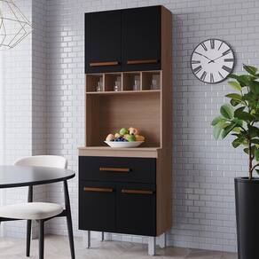 Armario Paneleiro 4p 1g 197x60 Cm Vitoria Savana Preto Mobbs Savana Preto